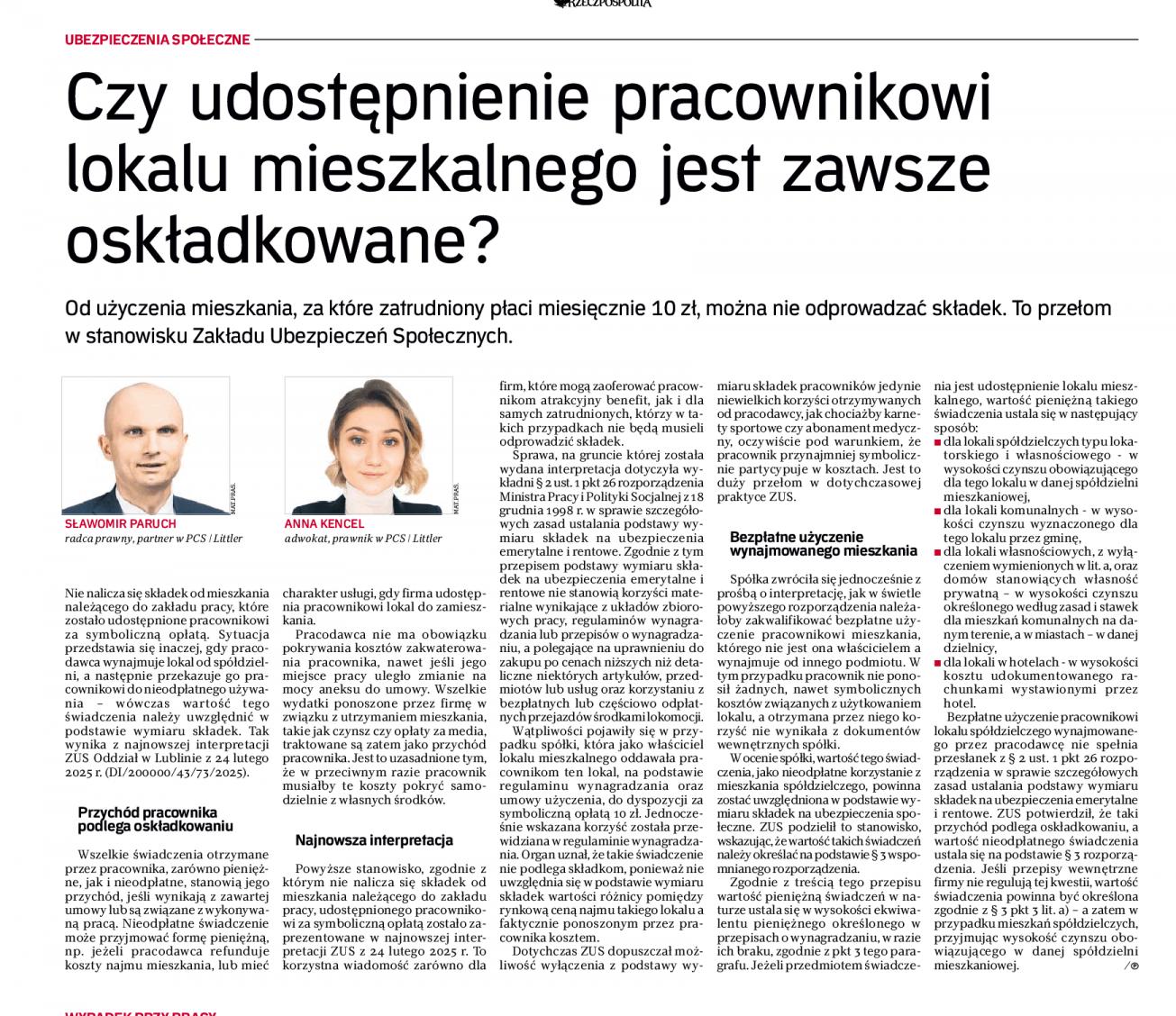ZUS zaprezentował nową interpretację, która ułatwia firmom oferowanie mieszkań pracownikom. Jeśli lokal udostępniany jest za symboliczną opłatą i spełnia określone warunki, nie trzeba odprowadzać składek. Kluczowe pozostaje właściwe sformułowanie celu i charakteru najmu. Więcej informacji: tutaj